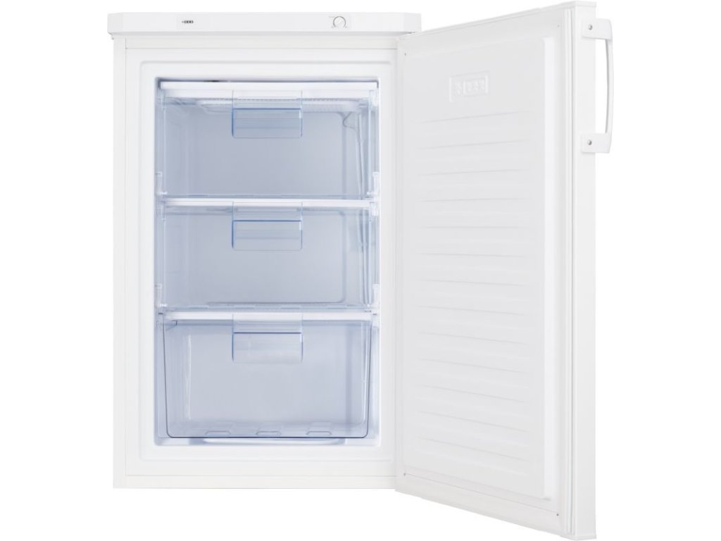 Mrazák s objemem 80 litrů má uvnitř 1 zásuvku a 2 výklopné přihrádky. Jsou vyrobeny z průhledného plastu a tak se nemusíte trápit složitým otevíráním a nahlížením do poliček. Jednoduše a snadno uvidíte, jaké jsou vaše zásoby uvnitř. Vybavená je i ergonomickým vnějším madlem, které usnadňuje otevírání její dvířek.