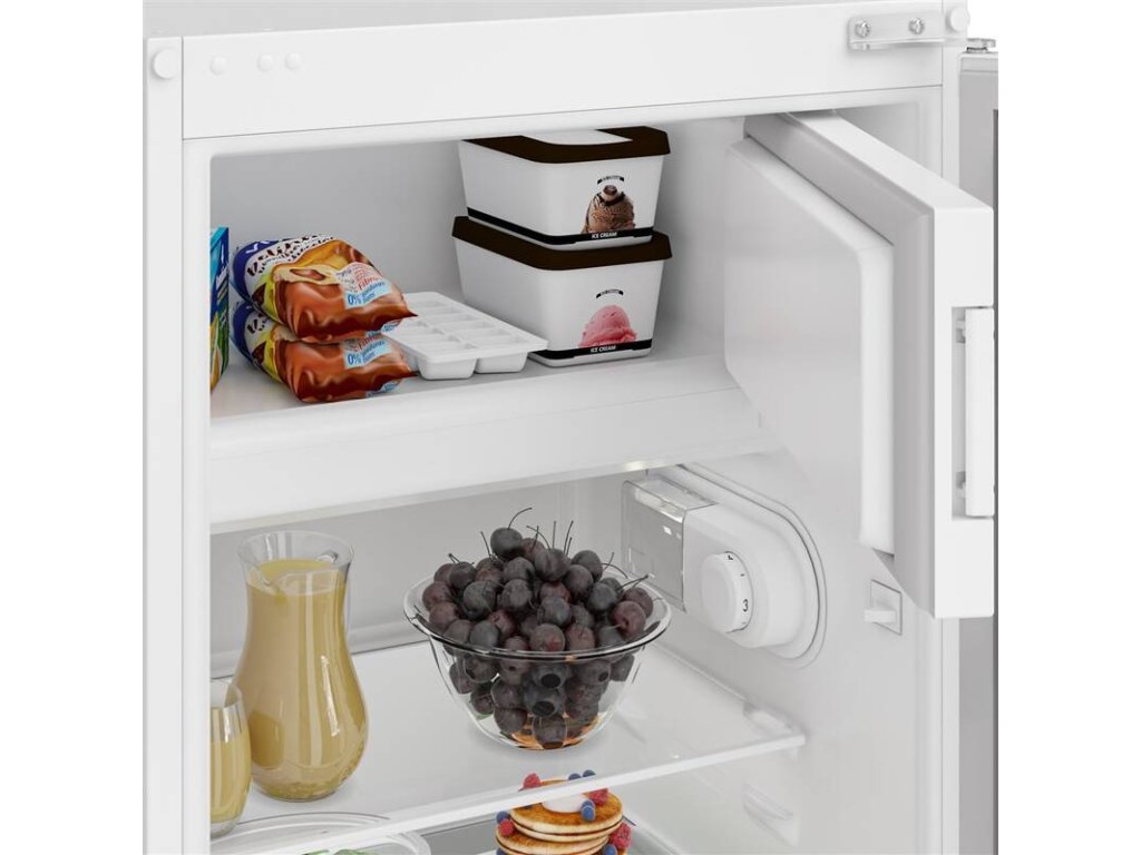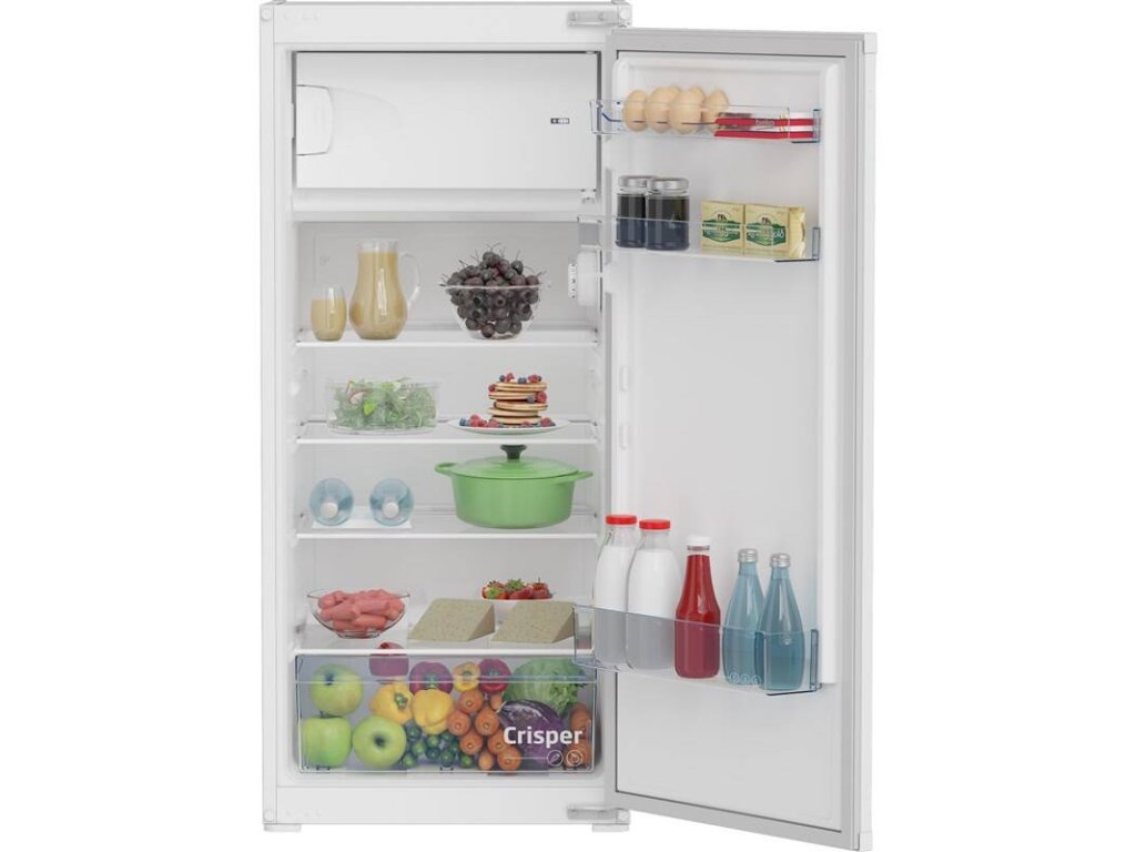 vestavná chladnička s mrazicím oddílem • výška 121,5 cm • objem chladničky 156 l / mrazničky 19 l • energetická třída E • možnost změny směru otevírání dveří • MinFrost®: méně časté odmrazování • hlučnost 35 dB • V × Š × H: 121,5 × 54 × 54,5 cm