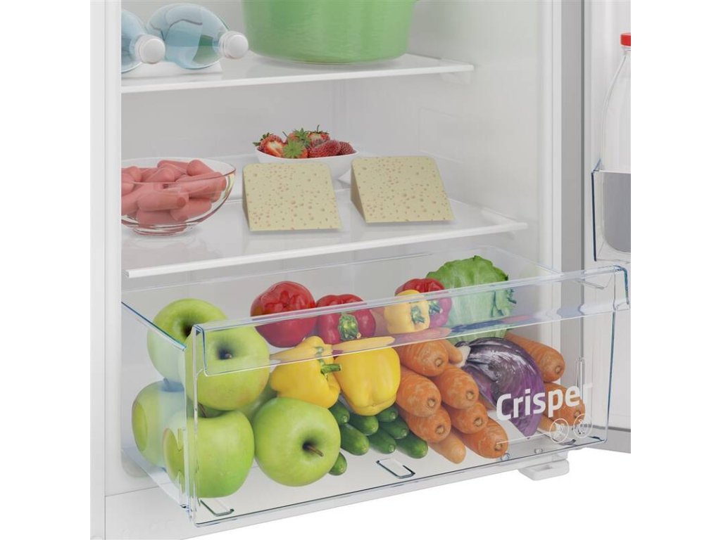Jednodveřová vestavná chladnička Beko BSSA210K4SN s kapacitou chladicí části 156 l a mrazničky 19 l může být skvělou volbou pro menší domácnosti. Roční spotřeba dosahuje 166 kWh, spadá to energetické kategorie E. Maximální úroveň hlasitosti nepřesahuje 35 dB, řadí se do třídy hlučnosti B. Při výpadku proudu zůstane obsah v chladu po dobu až 13 hod. Uvnitř chladničky se nachází skleněné police a zásuvka na ovoce a zeleninu. Díky LED osvětlení se v chladničce snadno vyznáte. V případě potřeby lze otočit směr otvírání dveří. Pro méně časté odmrazování je lednice vybavená technologií MinFrost®.