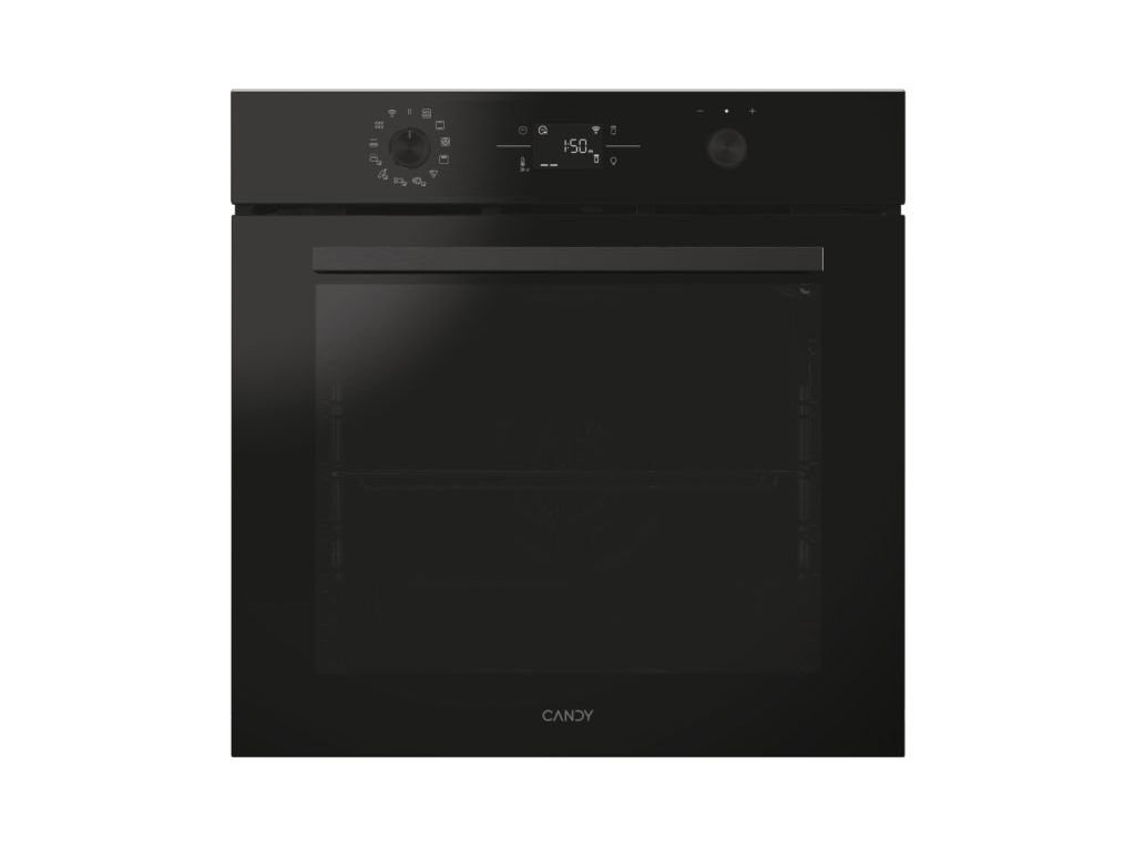 Vestavná trouba Candy s možností propojení s telefonem a dotykovým displejem. Energetická třída A++, 12 pečících programů a celková kapacita 78 litrů.