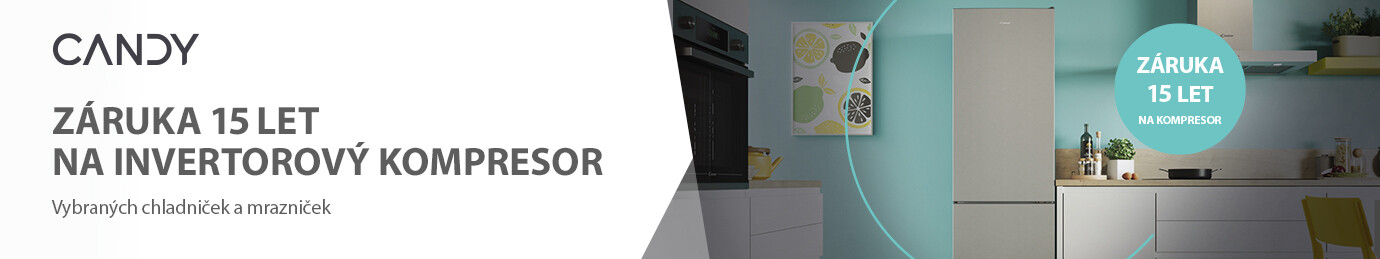 Zaregistrujte chladničku a získejte 15 let ZÁRUKU na invertorový kompresor. Vztahuje se na vybrané chladničky a mrazničky Candy.
