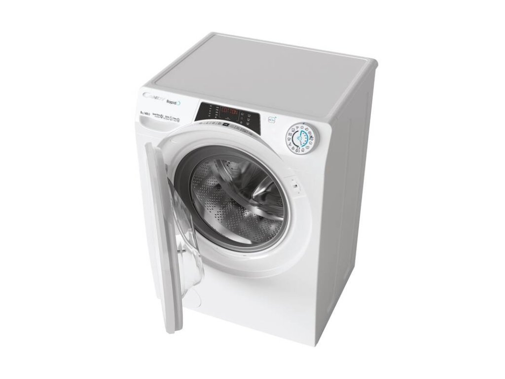 Předem plněná pračka Candy RO 1486DWMT/1-S RapidÓ je tichá a úsporná. Pračka má bílou barvu s bílou hranou dvířek. Hloubka pračky je 53 cm. Pračka vám ušetří nejen čas, ale také energie, protože patří do třídy energetické účinnosti A. S inovativním motorem Speed-Drive v kombinaci se systémem Quick&Clean umí vyprat vaše prádlo za 39 minut, bez ztráty výkonu a kvality praní. Vypere až 8 kg prádla a navíc se dá ovládat pomocí Wi-Fi a chytrého telefonu s aplikací hOn i když jste zrovna mimo domov. Spotřebič pohání invertorový motor Speed Drive s velmi tichým chodem, který i při těch nejvyšších otáčkách dosahuje hlučnosti pouhých 76 dB. Navíc oproti běžnému motoru je jeho efektivita praní až o 50 % větší, tím je dosažení perfektních výsledků zaručeno i v případě výběru jedním z rychlých cyklů.