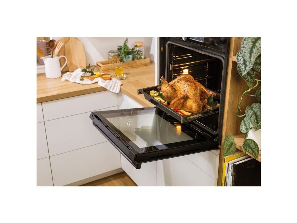 Upečte si své oblíbené pokrmy ve vestavné troubě Gorenje BPSX6747A05BG v černém provedení. Tento model disponuje extra velkým pečicím prostorem o celkovém objemu 77 litrů. Na výběr budete mít jeden ze 22 oblíbených programů, jako je například Pizza, FrozenBake, AirFry nebo program ExtraSteam pro dokonale křupavou kůrku chleba. Kromě praktických programů je trouba vybavena také užitečnými funkcemi, jako je například GentleBake pro udržení šťavnatosti pokrmu. Díky dvojitému grilovacímu tělesu je PerfectGrill perfektní pro přípravu pokrmů na grilu. Funkce gratinování vytvoří zlatou krustičku na pečených bramborech či masu. Chcete-li mít vždy správně propečené maso, můžete využít termosondu, která za vás pohlídá teplotu uvnitř jídla. Funkce SoftOpen a GentleClose zajistí tiché otevírání a zavírání dvířek.