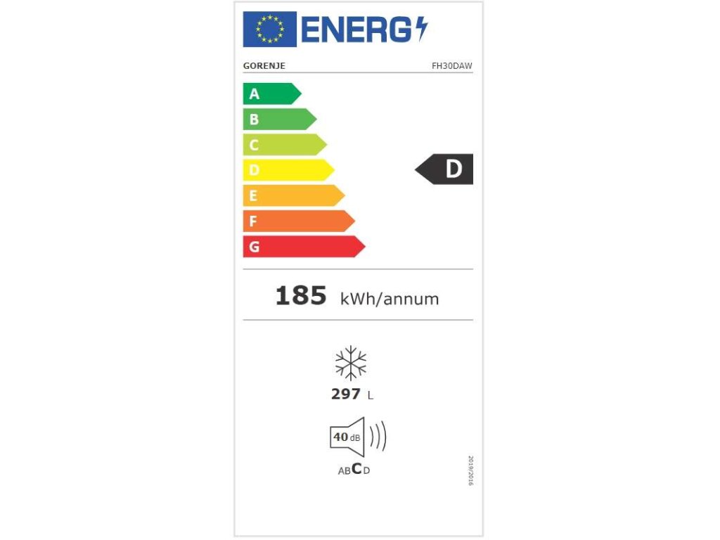 Truhlicová mraznička Gorenje FH30DAW v bílém provedení má objem 297 litrů. Je vybavena elektronickým ovládáním, funkcí FreezeProtect, funkcí rychlého zmrazení a zámkem dveří. Uvnitř se nacházejí 2 koše. Mrazicí kapacita je 16 kg za 24 hodin. Mraznička má manuální odmrazování.