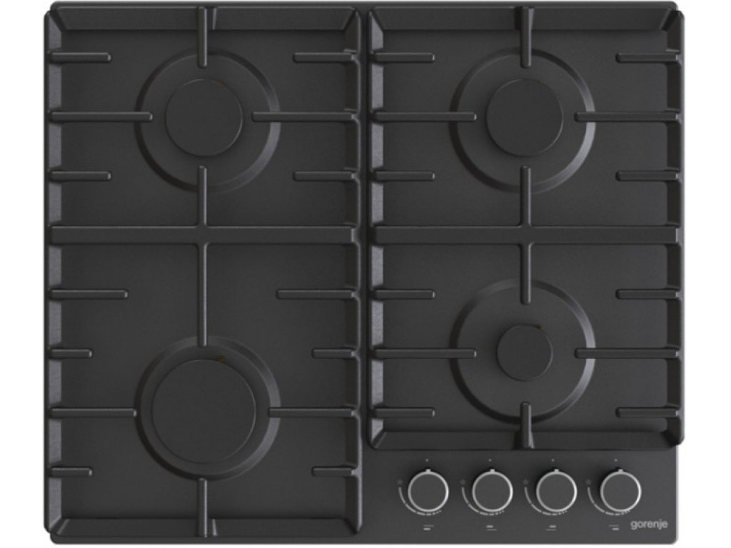 Vestavná plynová varná deska v černém provedení s šířkou 60 cm, 4 varnými zónami, mechanickým ovládáním umístěným vpředu a zapalováním v knoflíku. Gorenje G642AB disponuje litinovými mřížkami ProGrids a pojistkami plamene hořáků StopGas.