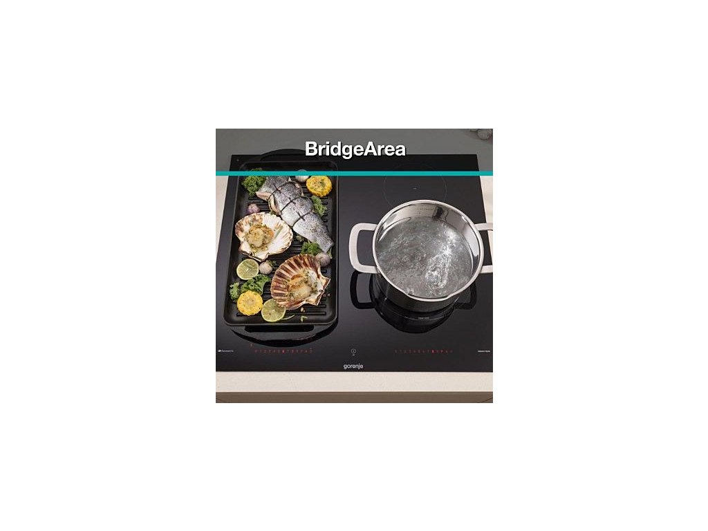 Indukční varná deska Gorenje s možností propojení dvou varných zón, časovačem a automatickými programy.