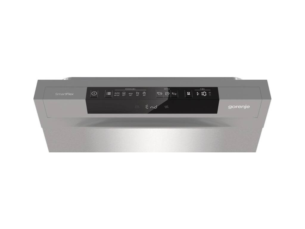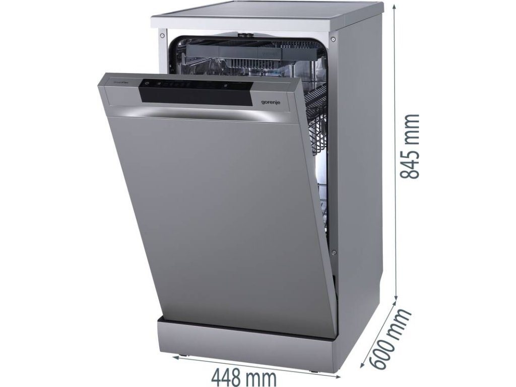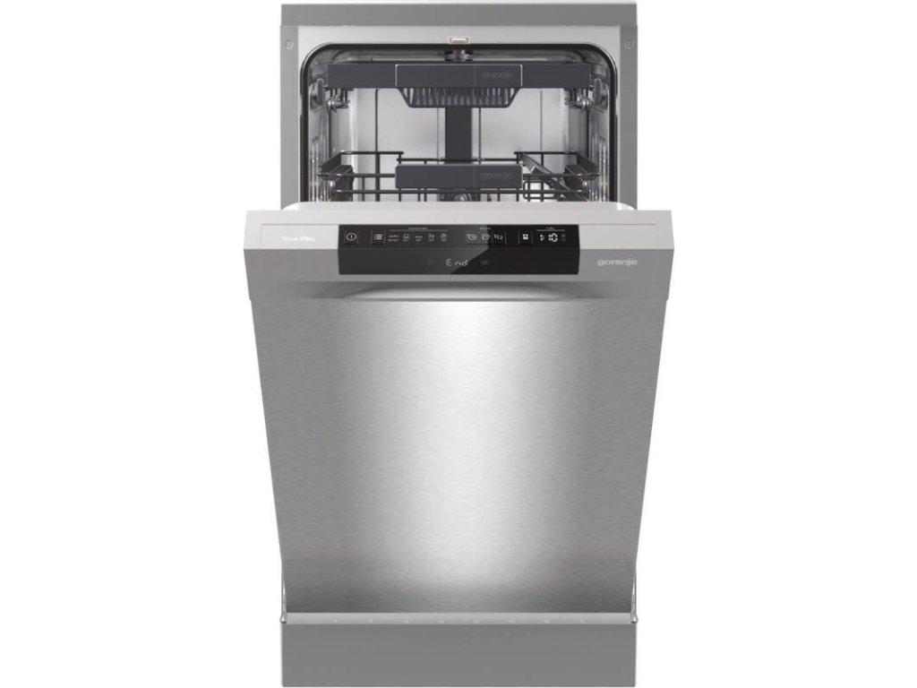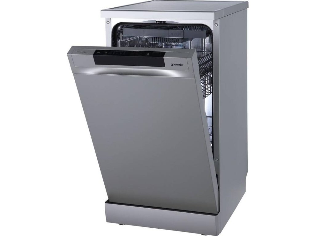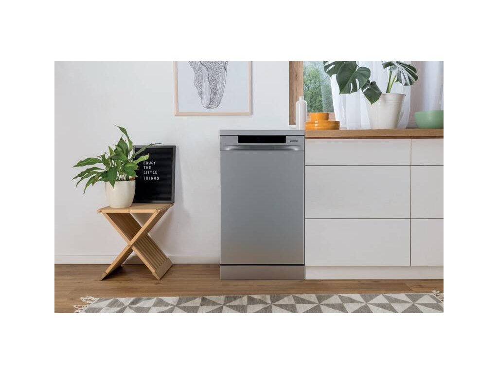 Dopřejte svému nádobí perfektní péči. Volně stojící myčka nádobí Gorenje GS563B10Xpojme najednou až 10 sad nádobí. Díky systému Click Clack horního koše a multifunkčního spodní koše se nezalekne výzev, jako jsou pekáče či větší hrnce. Myčka se řadí do úsporné energetické třídy B, a tak se nemusíte se obávat sni vysokých účtů za vodu i energie. Tento model spotřebuje na jeden mycí cyklus 8 l vody a 60 kWh/100 cyklů. Kromě toho dosahuje myčka maximální hlučnosti 44 dB. Spotřebič také umožňuje přívod horké vody o maximální teplotě 60 °C, což napomáhá k úspornému provozu. Ovládání této myčky probíhá intuitivně. Na přehledném panelu si pomocí tlačítek snadno nastavíte požadovaný program i teplotu vody (65, 60, 55, 50, 45 °C). Vybrat si budete moct z programů, jako jsou Automatický, Intenziní, Eco, 1 hod. mytí nebo speciální program pro sklo.
