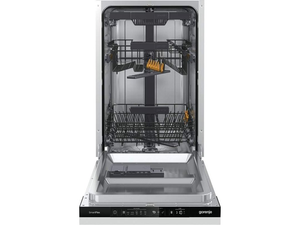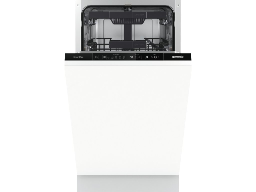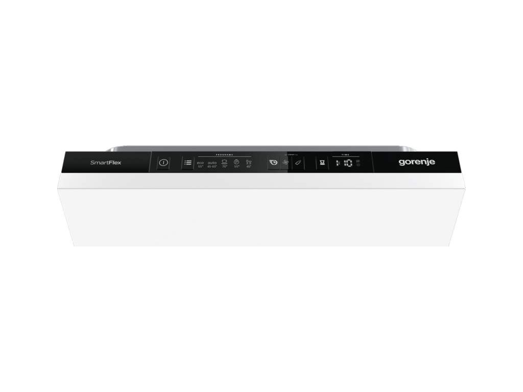 Plně integrovaná myčka nádobí Gorenje GV561D10 na jedno naplnění umyje 11 sad nádobí. Ovládána je shora pomocí ovládacího panelu tlačítky. Konec programu ohlásí zvukový signál. K dispozici má 5 mycích programů: Intenzivní mytí, Program na sklo, Auto program, ECO program, 1h mytí. Samozřejmostí je odložený start 0-24 hodin. Vnitřní výbavu myčky Gorenje GV561D10 tvoří 3 koše. Horní je možné výškově nastavit Click-Clack systémem. Funkce TotalDry automaticky pootevře dvířka na konci programu. Funkce SpeedWash umožňuje zkrátit programy. Pro bezpečnost je myčka nádobí vybavena ochranou proti přetečení Total AquaStop