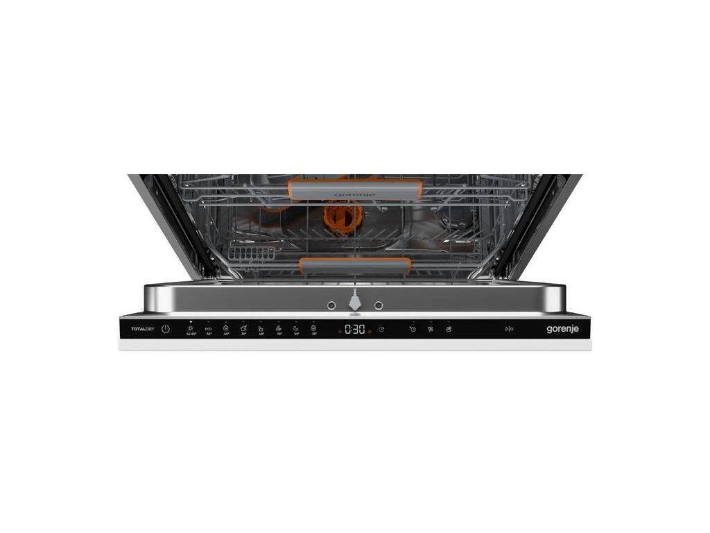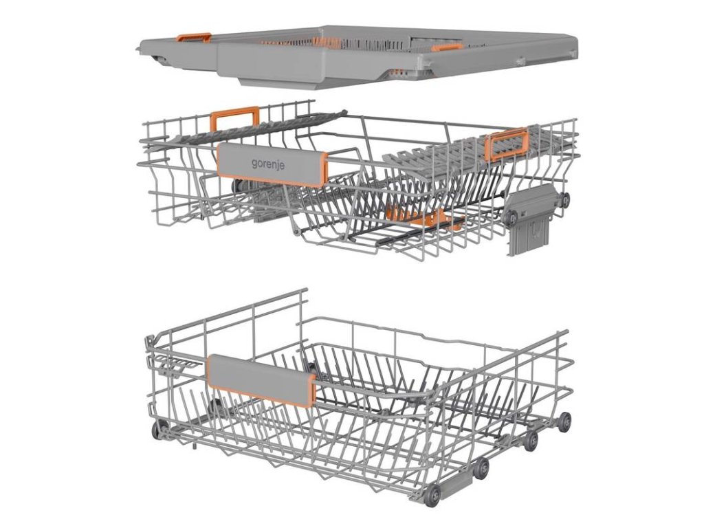 Poohlížíte se po tiché myčce? V tom případě by vás mohla zaujmout vestavná myčka Gorenje GV663B65XXL s plně integrovaným panelem, která se řadí do úsporné energetické třídy B. Uvnitř tohoto modelu se nachází 1 příborová zásuvka a 2 prostorné koše, ve kterých umyjete 16 sad nádobí. Srdcem myčky je tichý invertorový motor s hlučností pouhých 38 dB. Spotřebič dále disponuje užitečnými funkcemi a technologiemi, jako je například odložený start až o 24 hodin a technologie TotalDry, jenž po dokončení mycího cyklu automaticky pootevře dvířka pro efektivní vysušení nádobí. Pro uložení větších talířů či hrnců je horní koš vybaven manuálním výškovým nastavením.