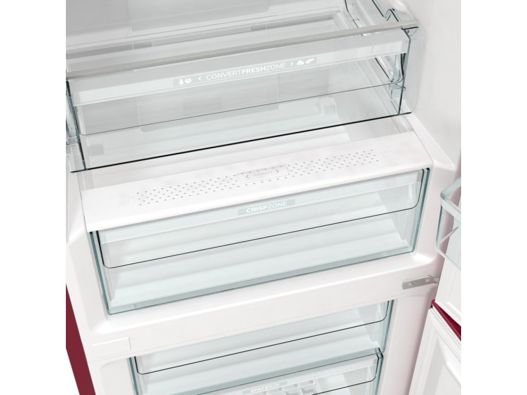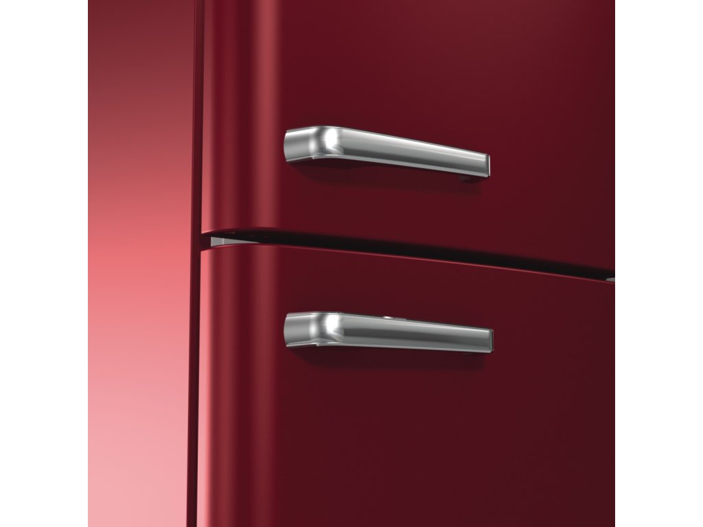 - Volně stojící kombinovaná chladnička v retro designu v provedení bordó