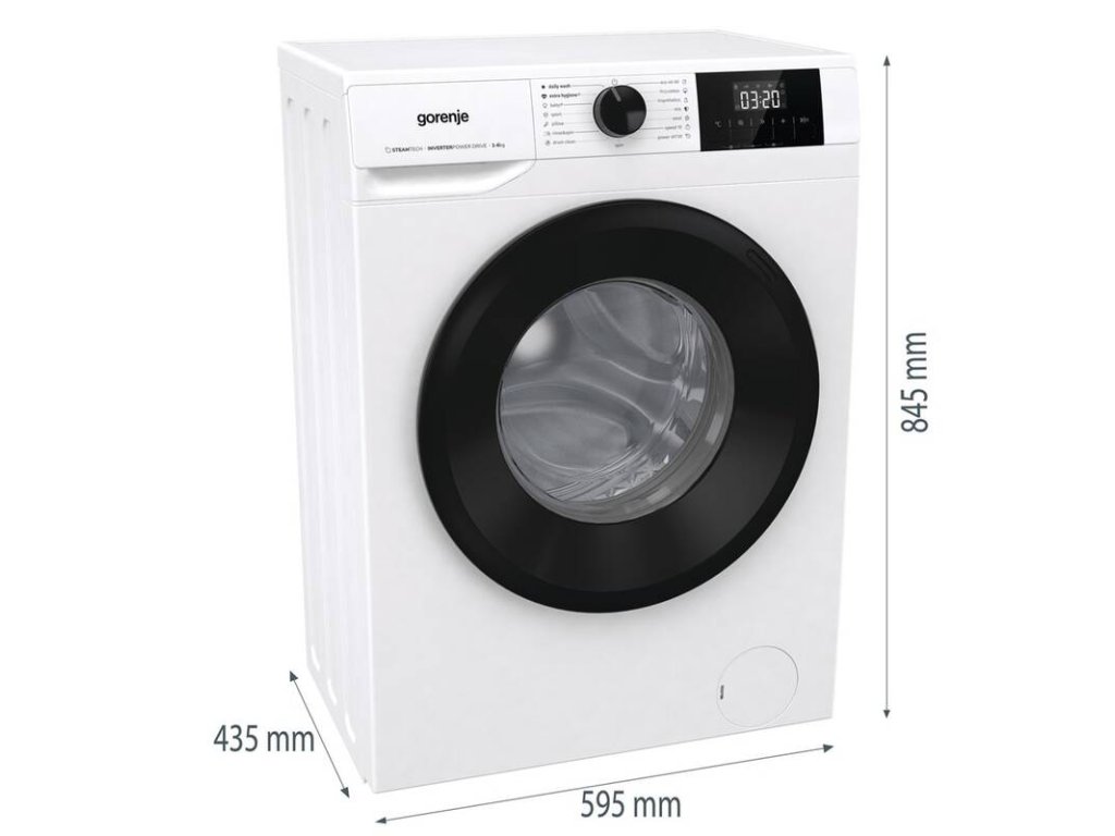 Hledáte úzkou pračku do své domácnosti? V tom případě by se vám mohla zalíbit předem plněná pračka Gorenje W3NGPI62SBS v bílém provedení. Tento model se pyšní kompaktními rozměry 84,5 × 59,5× 43,5 cm (hloubka s přesahem 60 cm) a na jeden prací cyklus vypere až 6 kg prádla. Srdcem této volně stojící pračky je mimořádně odolný a tichý invertorový motor PowerDrive. Při maximálních otáčkách 1 200 ot./min. dosahuje hlučnosti pouhých 74 dB. Díky tomu se nemusíte bát, že by vás spotřebič příliš rušil. Na jedno praní si pračka vyžádá 38 litrů vody a se spotřebou 48 kWh/100 pracích cyklů se řadí do energetické třídy B.