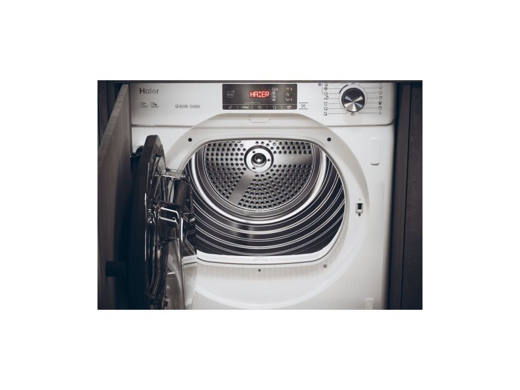 Haier HDBI H7A2TBEX-S je vestavná sušička s kapacitou 7 kg a tepelným čerpadlem pro úsporné a šetrné sušení. Nabízí senzorové sušení, odložený start a možnost chytrého ovládání přes aplikaci hOn. Určena pro vestavbu do kuchyňské linky.
