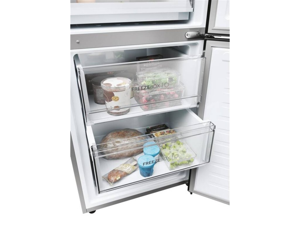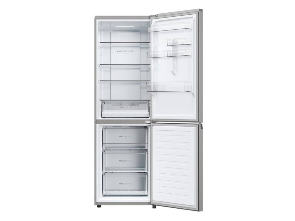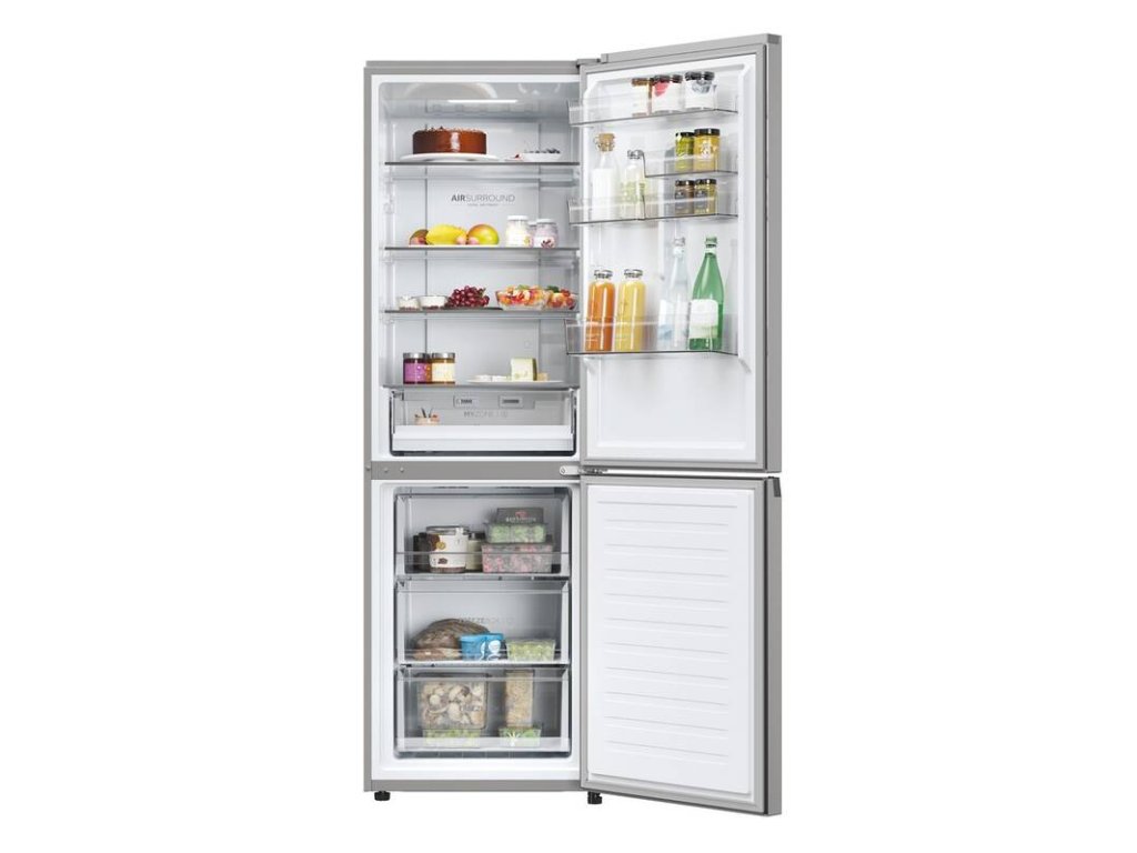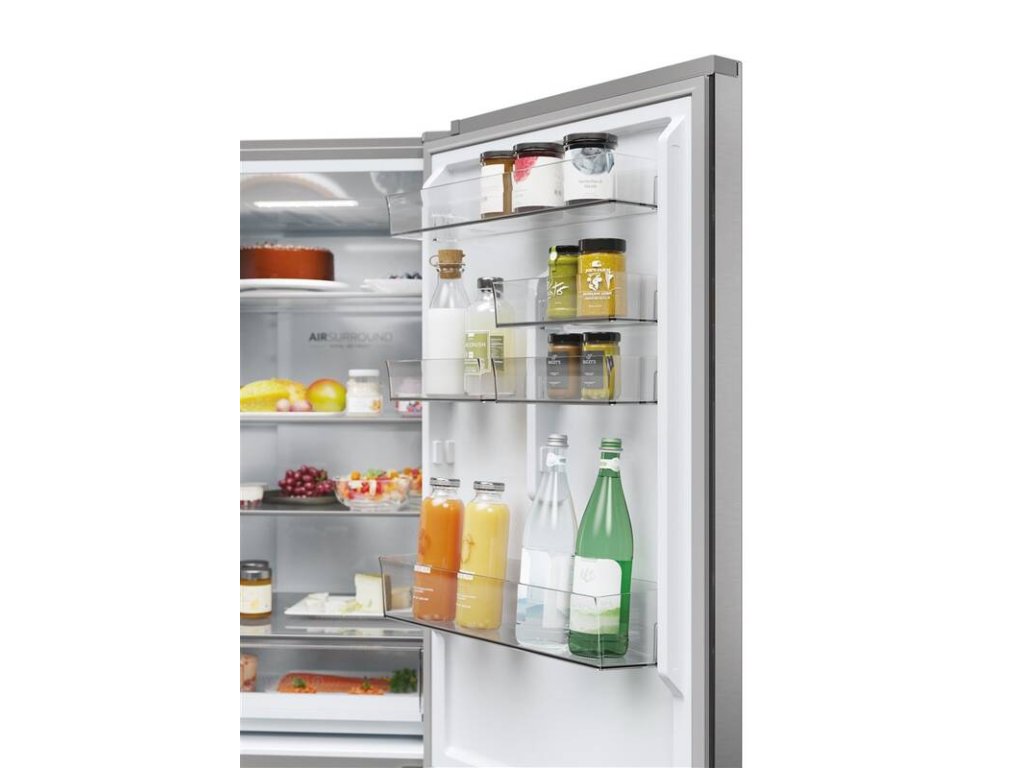Pokud potřebujete opravdu kvalitní kombinovanou chladničku, tato novinka od Haier vás nenechá na holičkách. Chladicí prostor o úžasném objemu 235 ludrží všechno vaše jídlo co nejdéle čerstvé díky technologii Air Surround Fresher Tech, která zajišťuje rovnoměrnou cirkulaci studeného vzduchu v celé chladničce a zabraňuje vysušení a narušení struktury potravin. Důležitá je také přítomnost My Zone, zásuvky se samostatnou regulací teploty. Nemusíte se bát skladovat i větší potraviny nebo vysoký hrnec s polévkou, interiér chladničky si přizpůsobíte podle vašich potřeb! Rovněž je možné změnit i směr otevírání dveří.