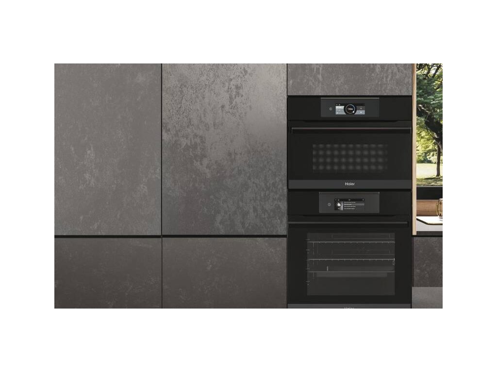Kompaktní trouba Haier s grilem a horkým vzduchem. Dotykový displej, elektronická minutka a objem 34 l.
