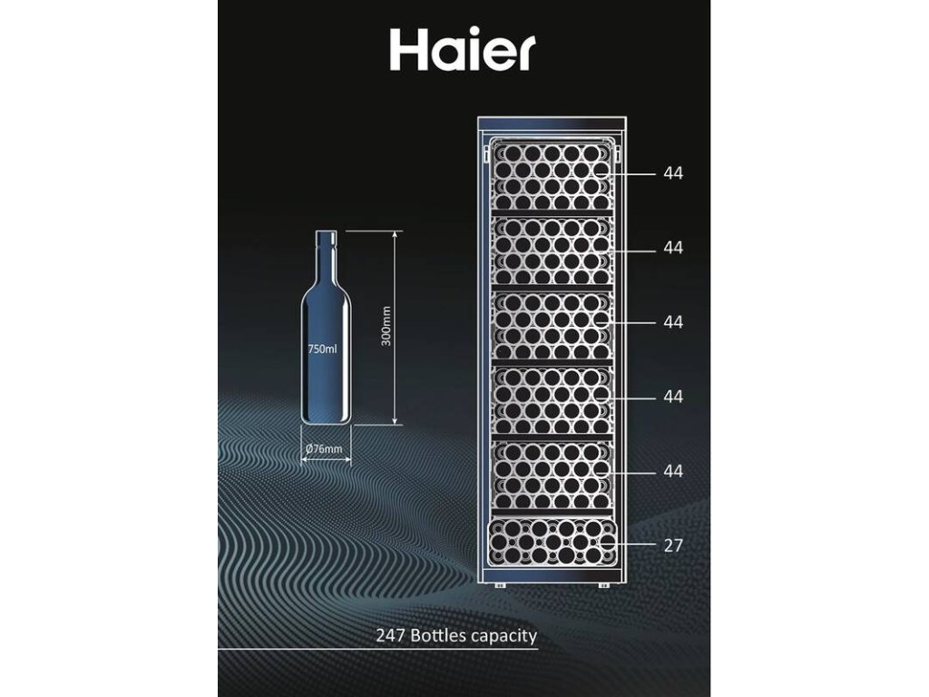Volně stojící vinotéka Haier HWS247GEH1 nabízí luxusní design i funkce. Prvotřídní zpracování se projevuje na profesionální funkčnosti vinotéky i na vzhledných dřevěných policích, které pojmou až neuvěřitelných 247 lahví vína. Každému vínu poskytne to nejlepší prostředí a věrně napodobí podmínky vinného sklípku. Úžasný přehled o své sbírce vín budete mít díky LED osvětlení a transparentnímu pevnému sklu s UV filtrem, který zabraňuje UV paprskům prostoupit dovnitř vinotéky.