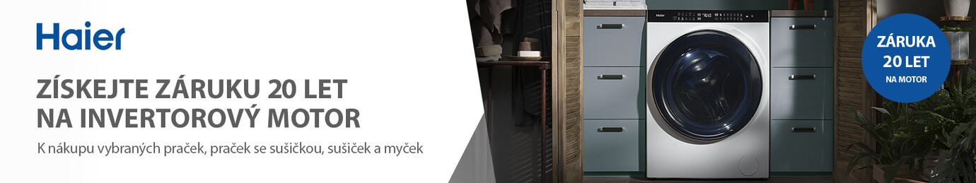 Získejte záruku 20 let na invertorový motor praček, praček se sušičkou, sušiček a myček Haier.