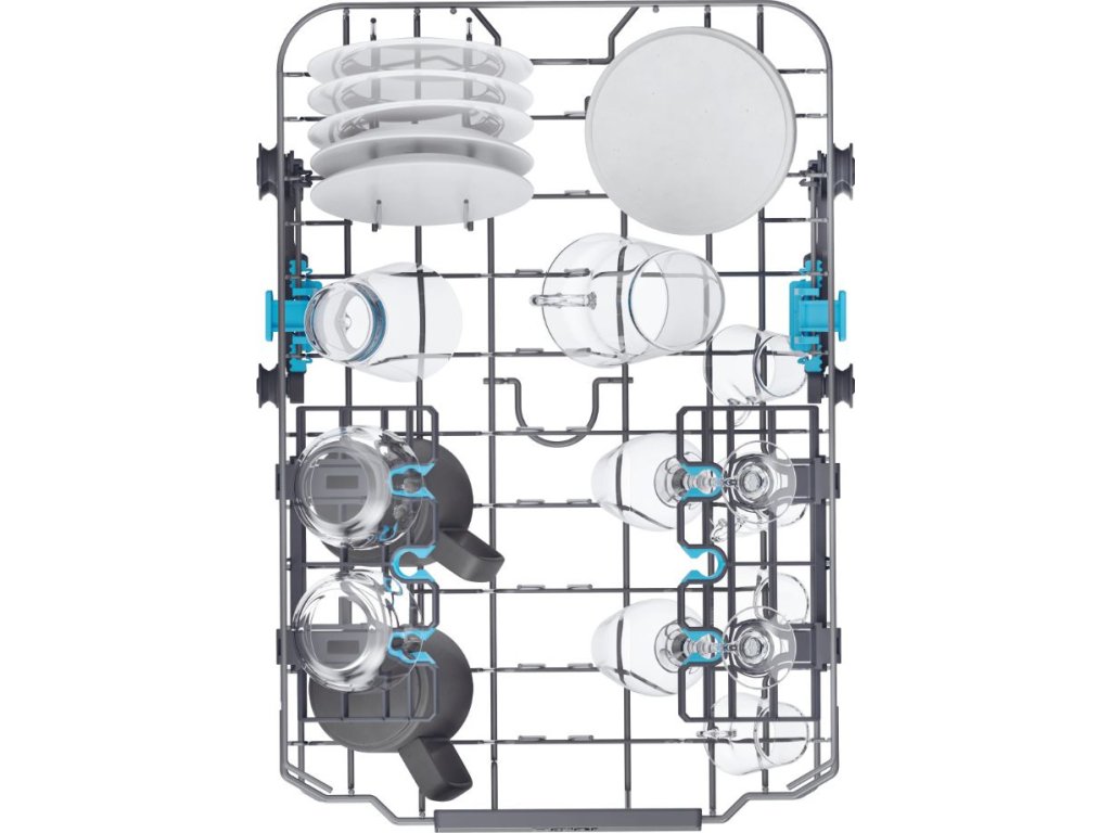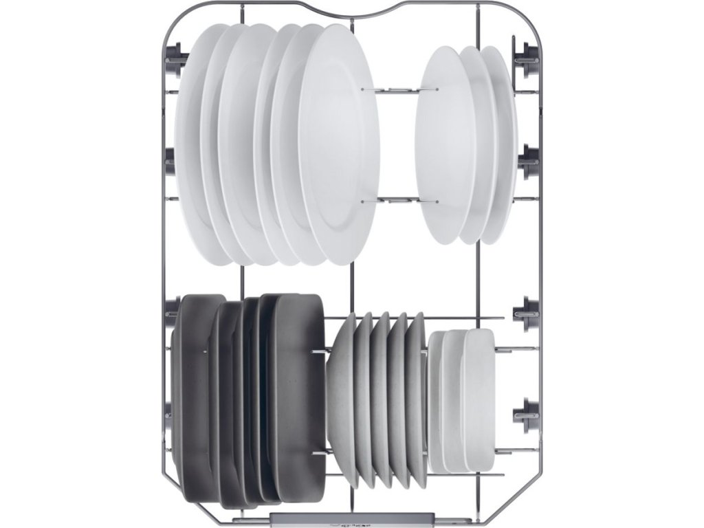- Plně sklopitelné držáky na talíře ve spodním a horním koši