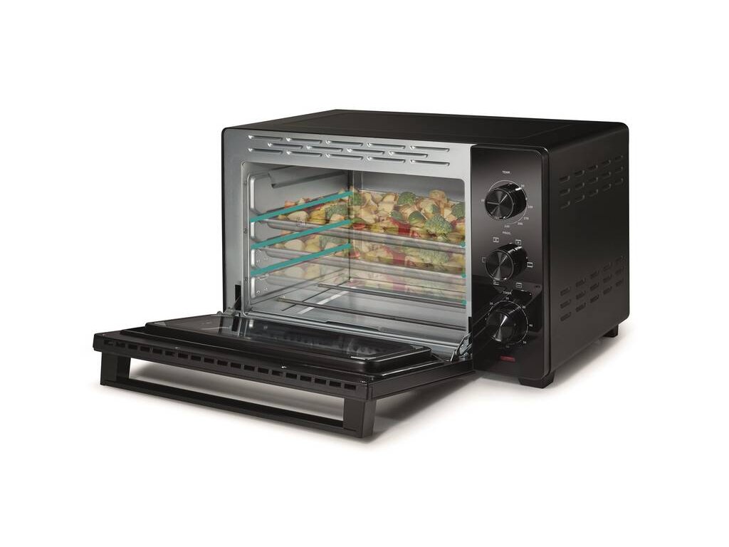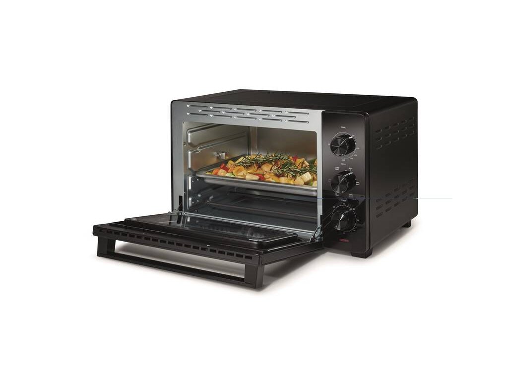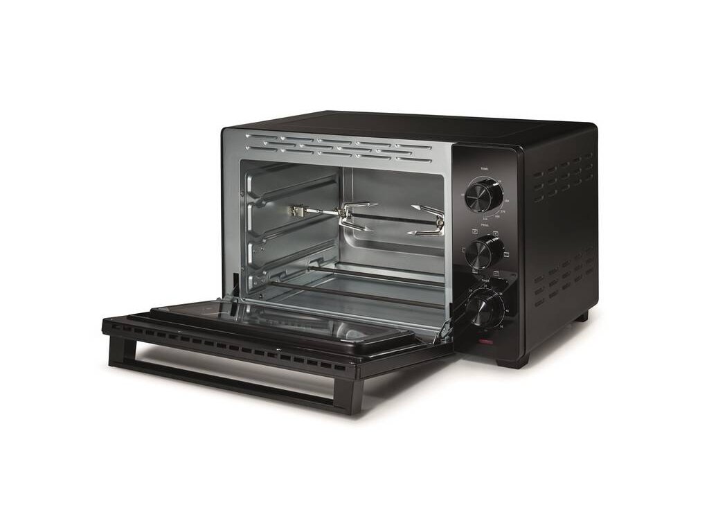 mini trouba • příkon 1600 W • objem 30 l • teplota do 220 °C • 3 úrovně pečení • ovládání pomocí otočných knoflíků • osvětlení trouby • dvojité sklo dvířek • držák pro vybírání plechu • příslušenství: 1 plech na pečení • chladné rukojeti • zásobník na drobky • drátěné rošty • Netto hmotnost 8,5 kg • V × Š × H: 31,7 × 52 × 40,6 cm