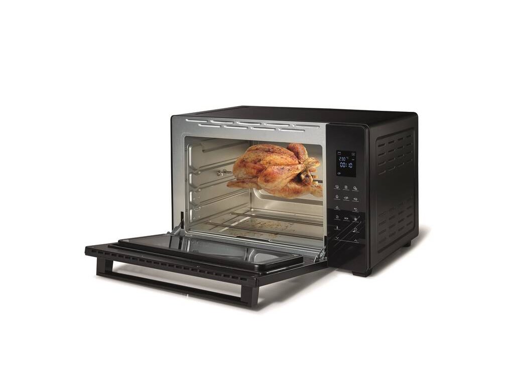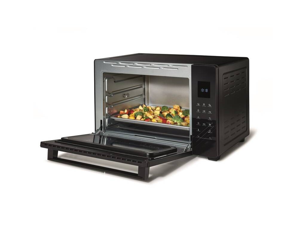 mini trouba • příkon 2000 W • objem 45 l • teplota do 220 °C • 3 úrovně pečení • dotykové ovládání • osvětlení trouby • dvojité sklo dvířek • držák pro vybírání plechu • příslušenství: 1 plech na pečení • chladné rukojeti • zásobník na drobky • drátěné rošty • hmotnost 14 kg • V × Š × H: 35,6 × 56,8× 42,1 cm
