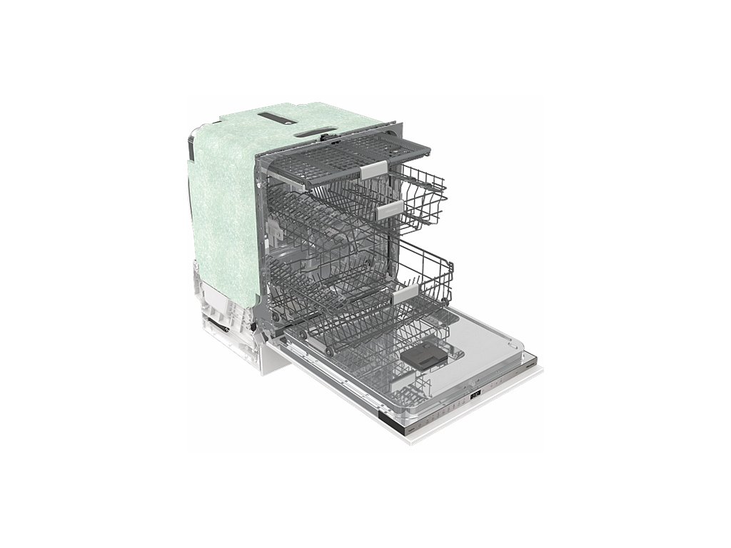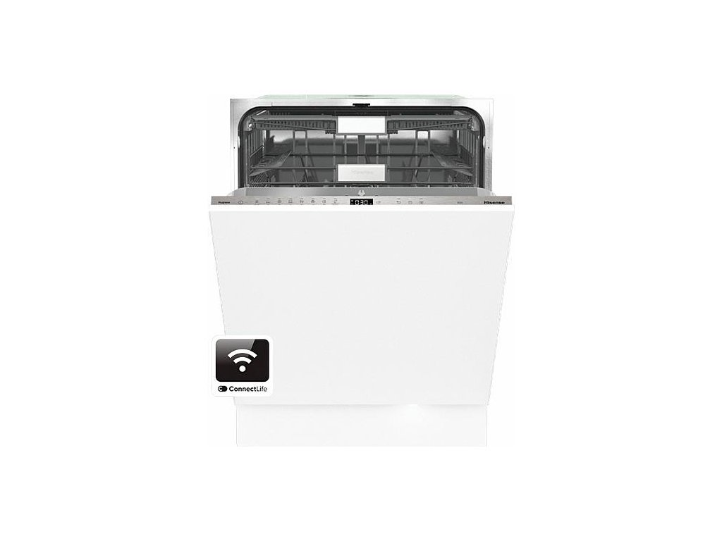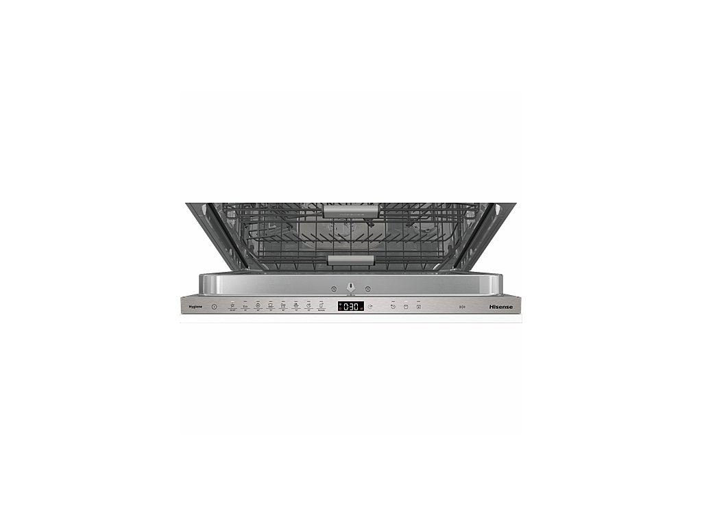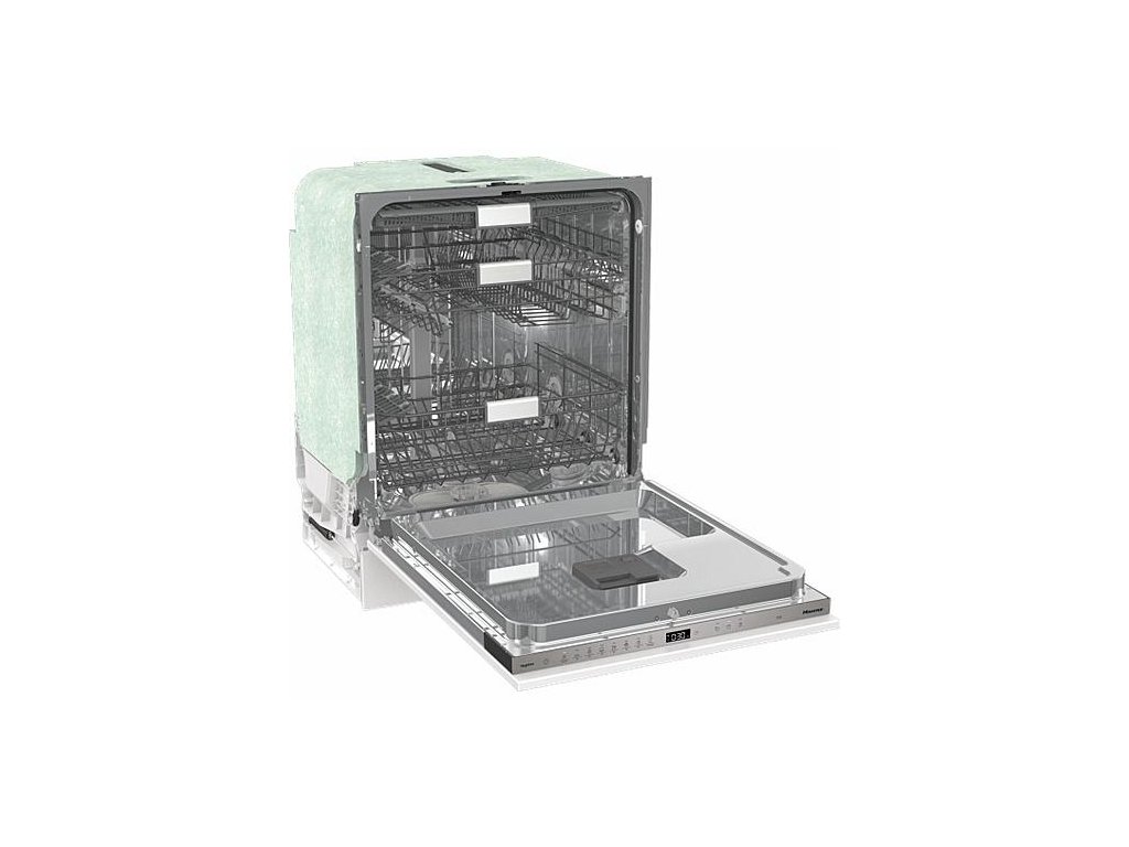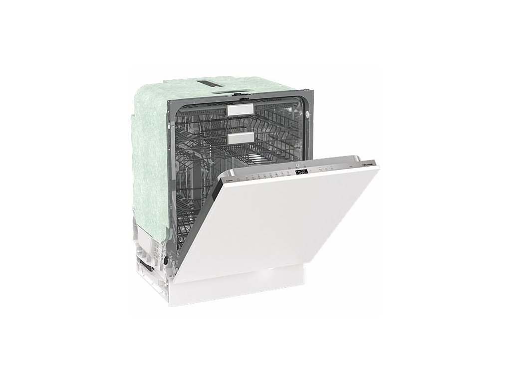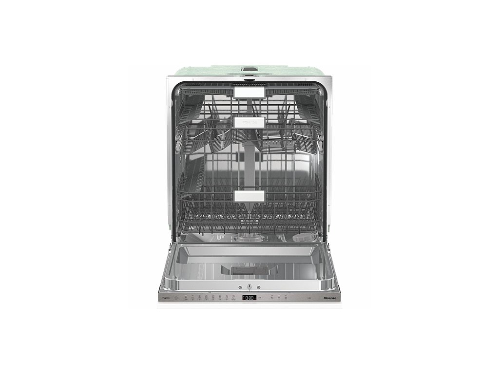 Vestavná myčka Hisense s invertorovým motorem a automatickým otevíráním dveří. Energetická třída B, 7 programů a celková kapacita 16 sad nádobí.