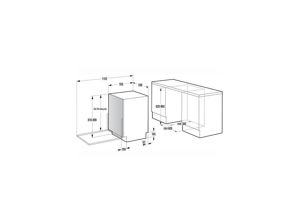 - Minimální hloubka otvoru pro instalaci: 555 mm