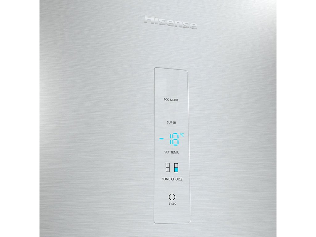 Kombinovaná chladnička Hisense s NoFrost systémem a zaměnitelným otevíráním dveří. Energetická třída B a celkový vnitřní objem 331 litrů.