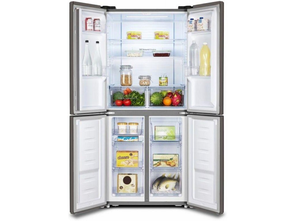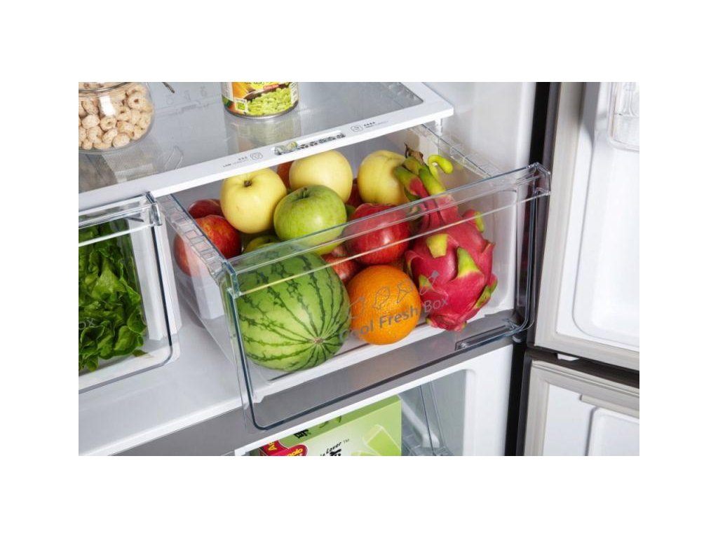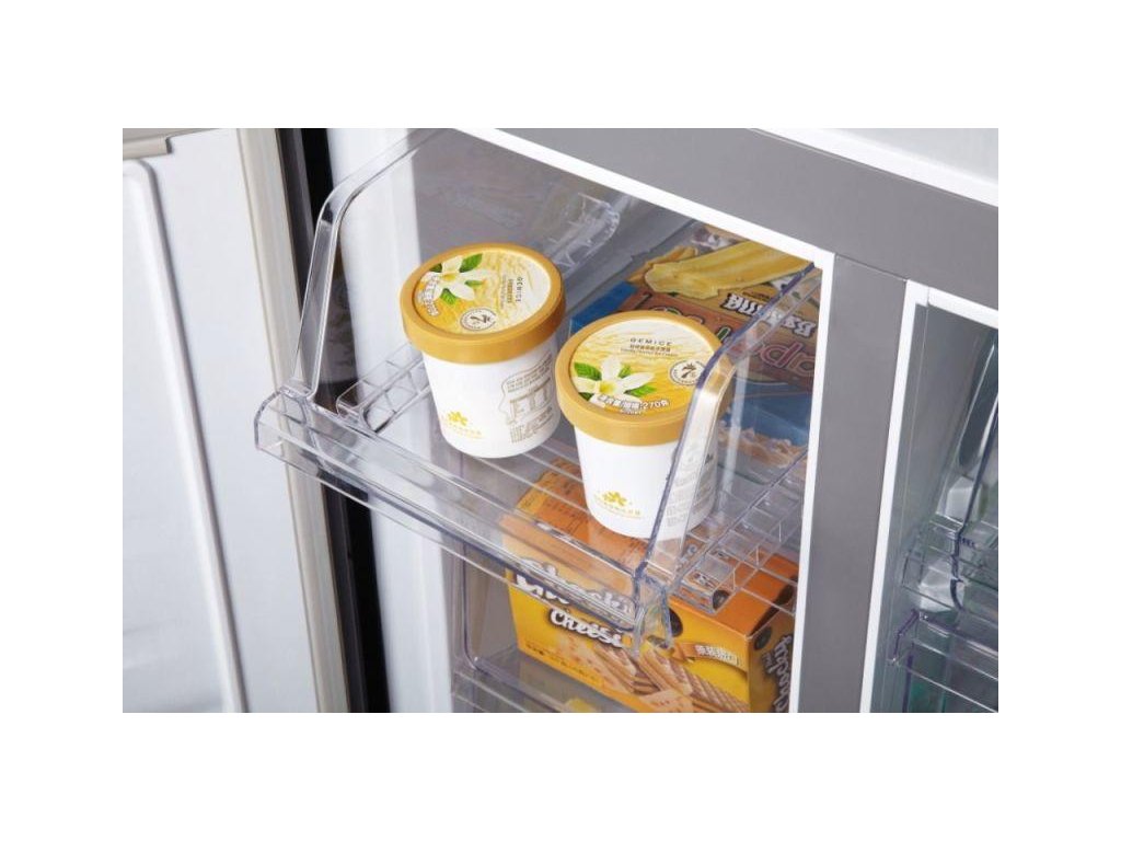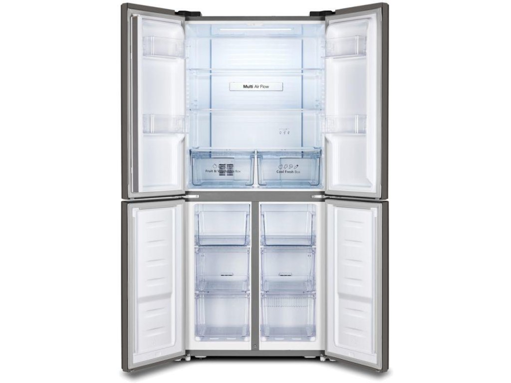 Volně stojící chladnička s mrazničkou amerického typu Hisense RQ515N4AC2 ve stříbrném provedení zabezpečí všechny vaše nároky na chlazení.Objem chladicí části přísluší 278 litrů a mrazicí části 149 litrů. Mrazicí kapacita je 12 kg/24 h a akumulační doba během výpadku proudu je 10 hodin. Je vhodná do vícečlenných domácností, kde poslouží jako skvělý pomocník při ukládání velkých nákupů. Navíc je vybavena pokročilými funkcemi, které se postarají o dlouhou trvanlivost uložených potravin, například Total NoFrost, Multiflow 360°, Super Cool.