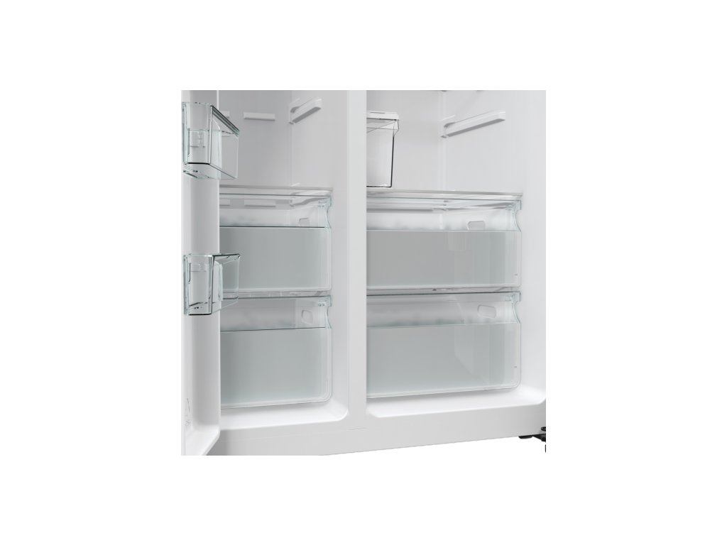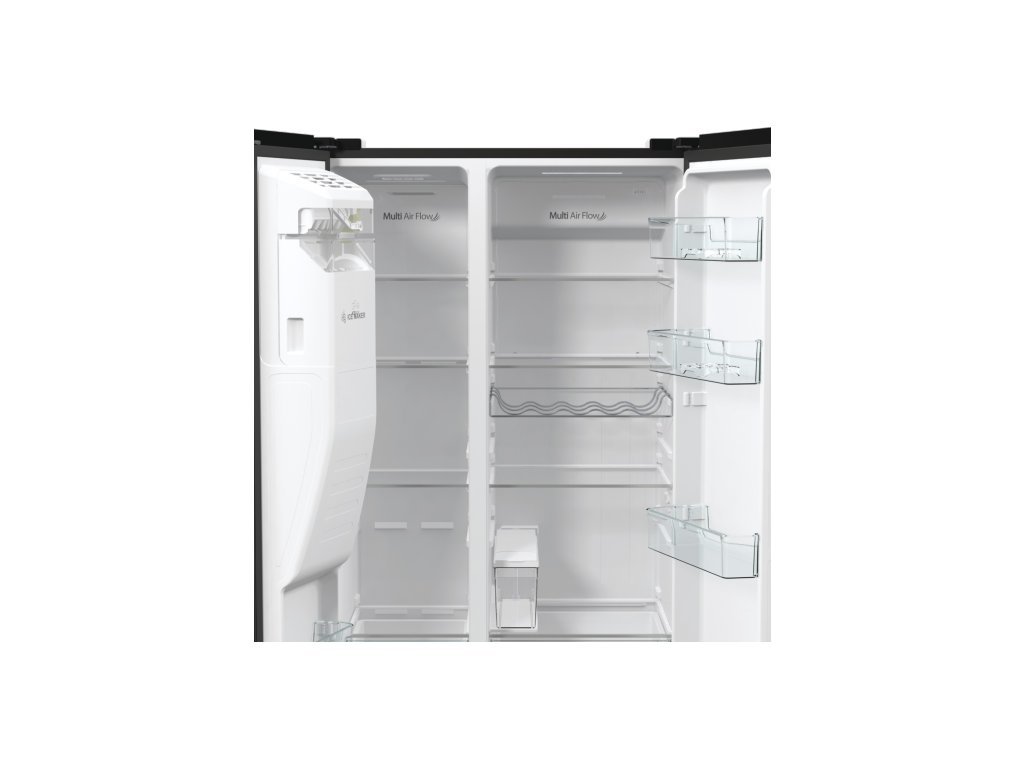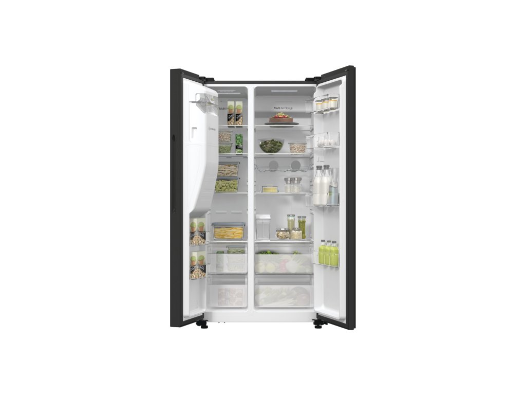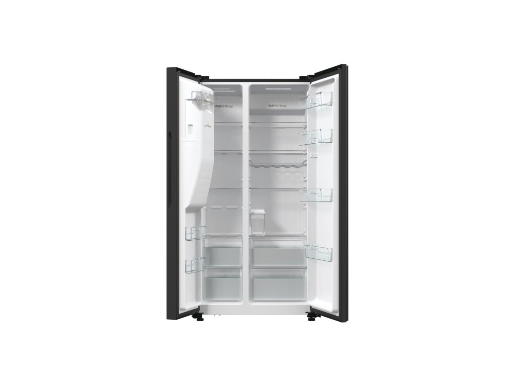 Americká lednice Hisense RS5P535NTFD nabízí prostorný objem 562 litrů, moderní beznámrazovou technologii Total NoFrost a rovnoměrné chlazení Multi Air Flow. Díky dávkovači vody a ledu, dotykovému ovládání a úsporné energetické třídě E je ideální volbou pro komfortní a moderní domácnost.