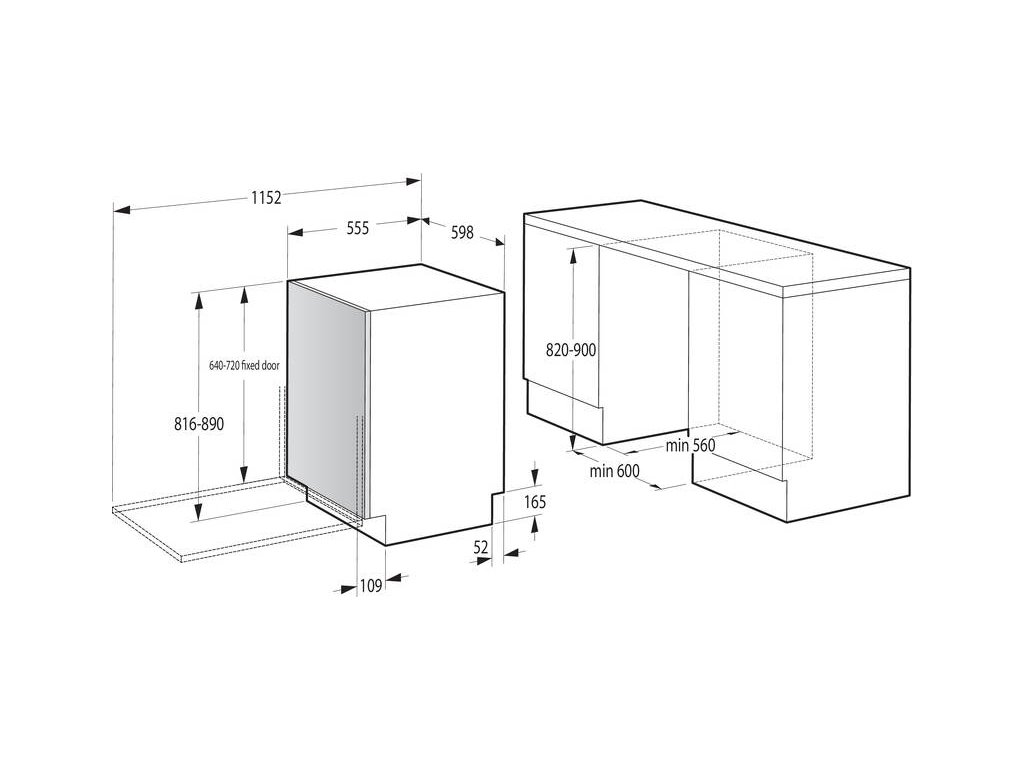 - Rozměry pro vestavbu (V׊×H) 820 × 600 × 555 mm