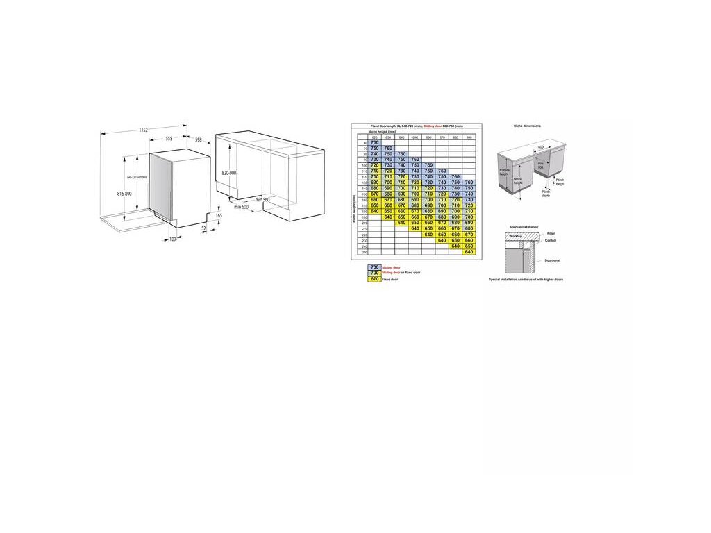 vestavná myčka nádobí • plně integrovaný panel • šířka: 59,8 cm • příborová zásuvka • 16 sad nádobí • energetická třída B • hlučnost 42 dB • automatické otevírání dvířek • záruka 10 let na invertorový motor • funkce SušeníPlus – automatické pootevření dvířek na konci programu • funkce RychléMytí – zkracuje dobu trvání jednotlivých programů • funkce tablety 3 V 1 • TotalDry – automatické otevírání dveří • bezpečnostní prvky: ochrana proti úniku vody, servisní diagnostika • V × Š × H: 81,6 × 59,8 × 55,5 cm