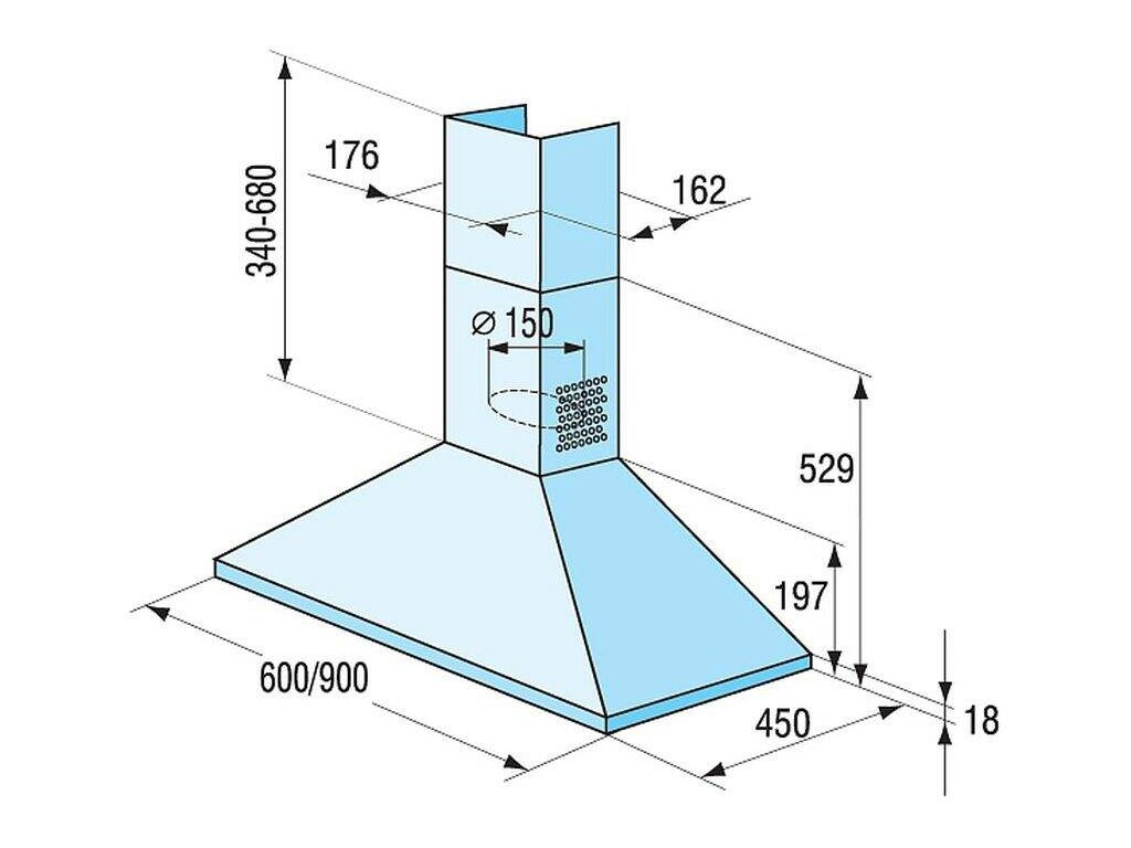 Maximální výkon odsávání 395 m³/h, Hlučnost 68 dB, Barva Nerezová ocel, Šířka 598, Hloubka 450