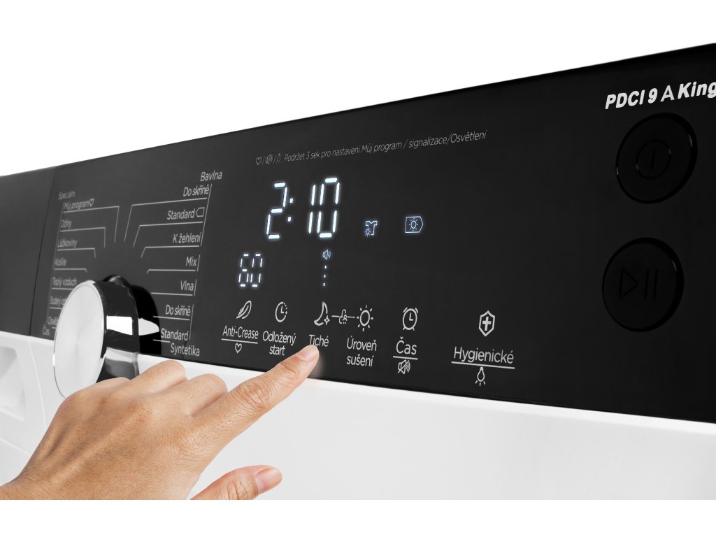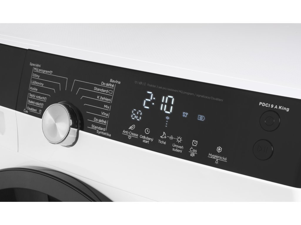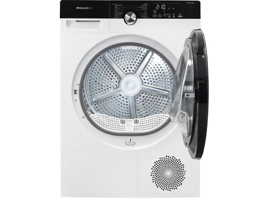Sušička Philco PDCI 9 A King je volně stojící kondenzační sušička, která využívá moderní technologii tepelného čerpadla. Tento model je navržen tak, aby efektivně sušil až 9 kilogramů prádla, což je ideální pro středně velké domácnosti.