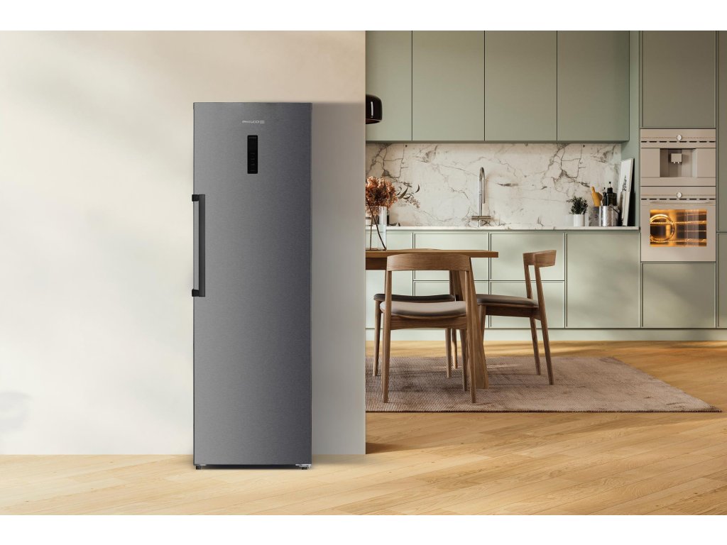 Jednodveřový NoFrost mrazák Philco PFN 274 DFPIDX s objemem 274 litrů poskytuje velkorysý prostor pro dlouhodobé zásoby. Díky technologii MultiAirFlow s beznámrazovým NoFrost provozem udržuje stabilní teplotu ve všech úrovních. Funkce SuperFreezerychle zmrazí čerstvé potraviny a FrostProtection zaručuje spolehlivý chod i v nevytápěných prostorách s teplotou až do -15°C po celý rok, tedy i v garáži nebo na chalupě. O tichý a úsporný provoz se stará invertorový kompresor s 10letou zárukou a hlučností jen 39 dB. Praktickou obsluhu zajišťuje EasyOpen madlo, možnost otočit otevírání dveří a zejména EasyDrawer s objemem 33 l na teleskopických výsuvech, který unese až 45 kg. Ve dveřích najdete chytrý prostor na mrazenou pizzu, takže se vám toho víc vejde do boxů.
