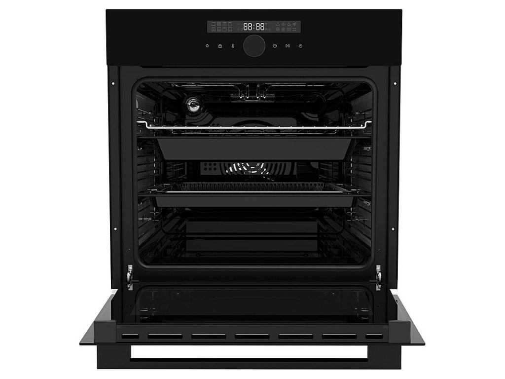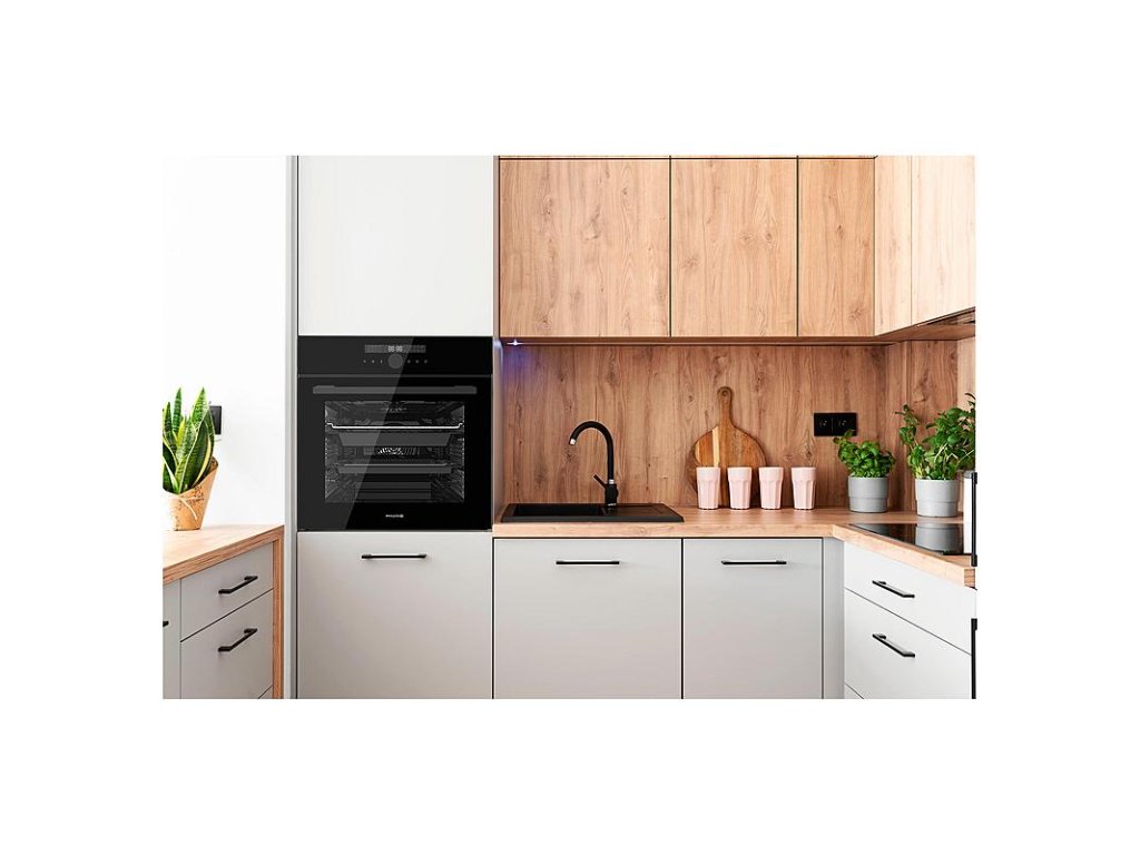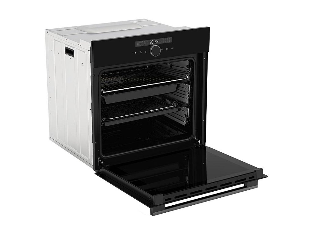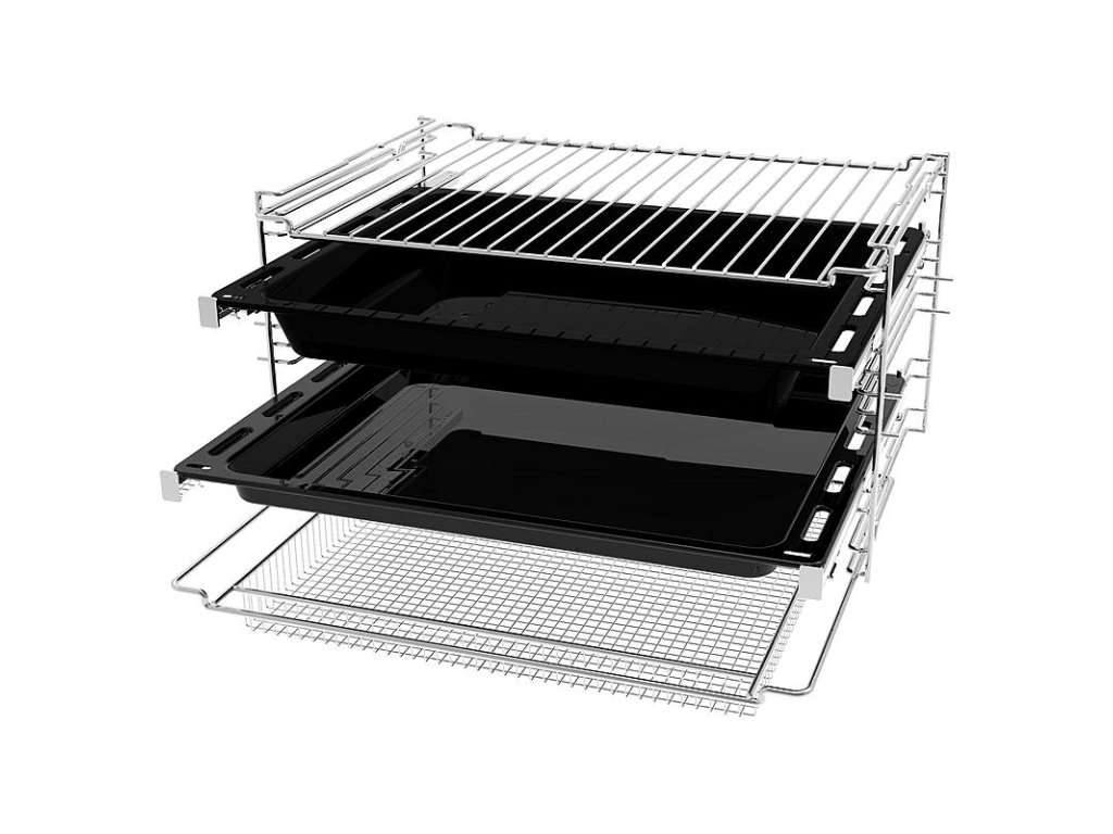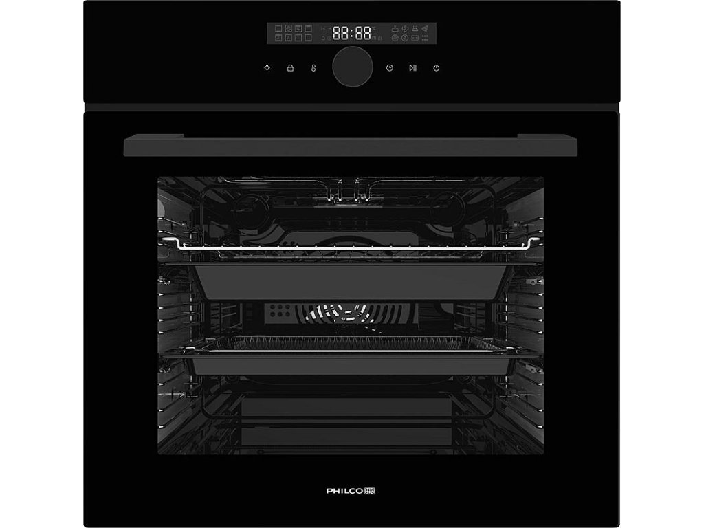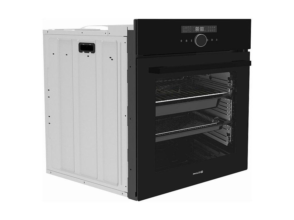 Multifunkční vestavná trouba Philco s dvěma teleskopickými výsuvy, katalytickými deskami a časovačem. Energetická třída A a horkovzdušné fritování.
