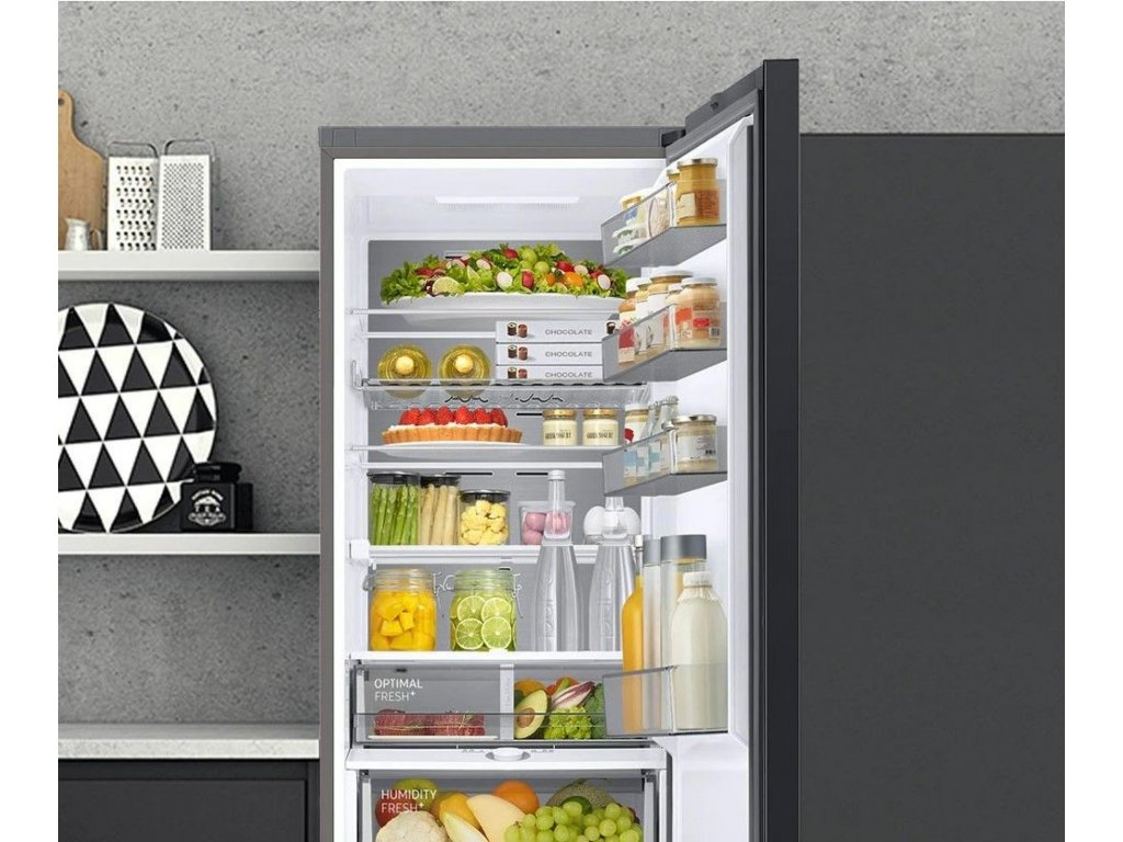 Chladnička v energetické třídě A s celkovým objemem 387 l. Samsung RB38A7B6AS9/EF nabízí dva oddělené okruhy pro ideální vlhkost Twin Cooling Plus, beznámrazovou technologii True No Frost a technologii Space Max. Bespoke – možnost spojení chladniček do páru nebo možnost výměny dveřních panelů.