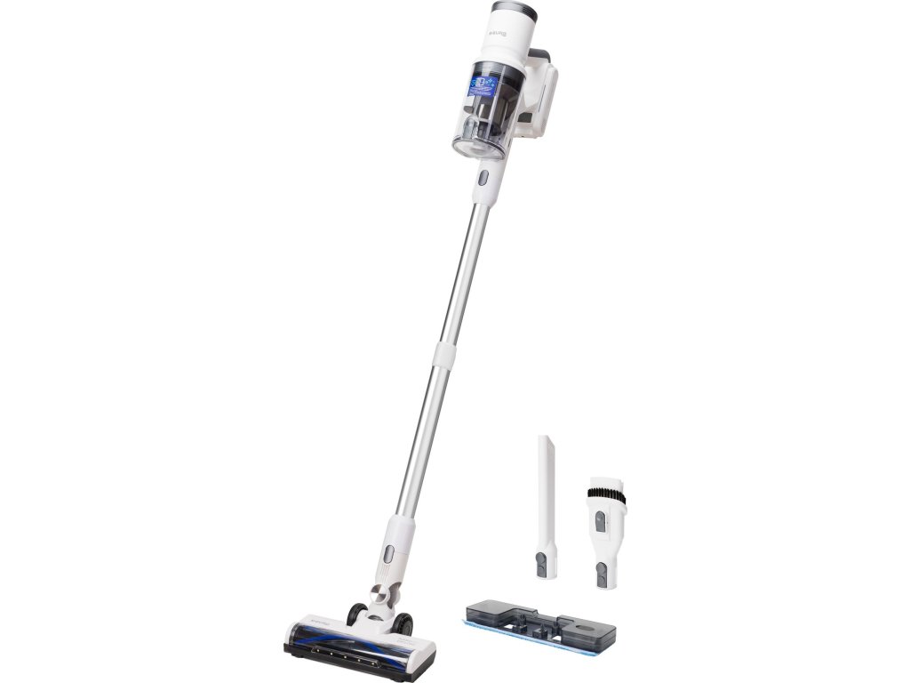 S tímto všestranným tyčovým vysavače budete moci současně vysávat i vytírat – součástí je totiž i mopovací nástavec, který lze jednoduše připnout na podlahovou hubici. Kromě toho lze jedním stiskem tlačítka z vysavače vyjmout teleskopickou trubici a používat jej jako kompaktní ruční vysavač pro přesný úklid auta či čalouněného nábytku. Siguro VT-H310W váží pouhých 2,8 kg, dále je vybavený výkonným BLDC motorem s dlouhou životností a v kombinaci s cyklónovou technologií poskytuje vysoký sací výkon až 85 AW. Díky vyměnitelné 25,9V Li-Ion baterii budete moci nepřetržitě vysávat až 60 minut. Trubice je teleskopická a její délku si můžete při vysávání vždy nastavit. Součástí balení je celá řada příslušenství – úklid domácnosti tak bude efektivní a rychlý.