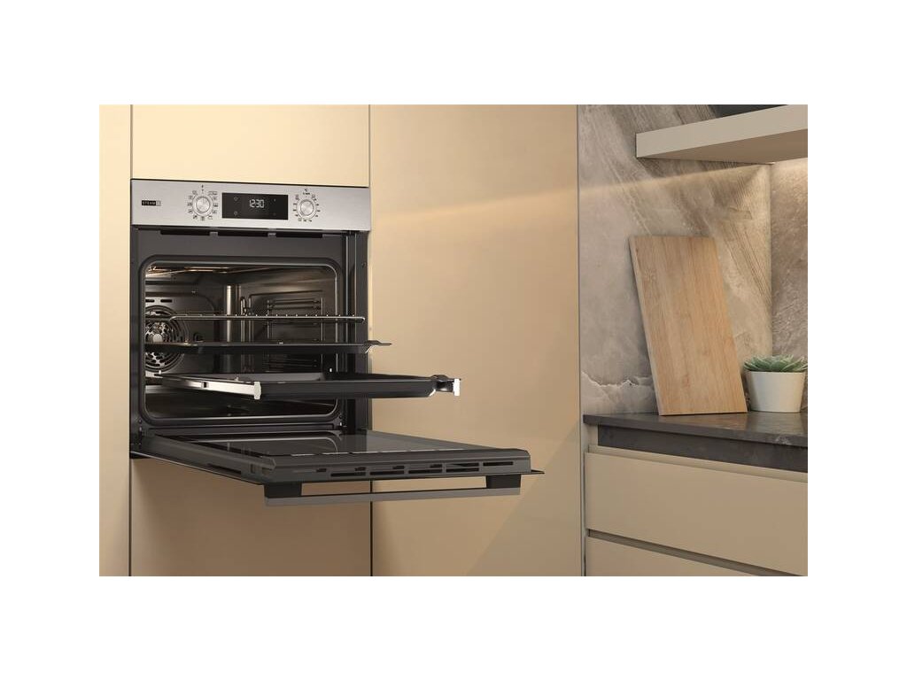 Vestavná trouba Whirlpool OMSK58HU1SX v nerezovém provedení má vnitřní objem 71 litrů. Nabízí 12 funkcí včetně funkce grilu, horkého vzduchu a páry.